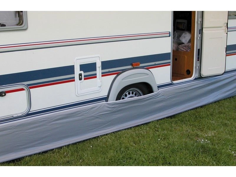 Stevige tochtstrook leverbaar in verschillende lengtes. De tochtstrook zorgt ervoor dat er geen onaangename trek ontstaat van onder de caravan en/of camper.